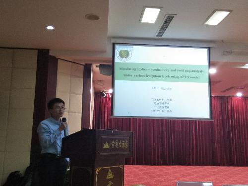 2017年11月16-18日,第四届“农业模型高级研讨会 2017”在郑州举办。大会包括特邀国内外著名农业模型专家主题报告、相关代表农业模型研究与应用报告、我国农业模型研究发展讨论与中国农业模型联盟建立等三个方面。来自国际水稻所(IRRI)、英国洛桑实验站、中国农业大学、威尼斯金沙欢乐娱人城、南京农业大学、中国科学院地理与资源研究所、中国气象局、河南气象局等国内外高校和学术组织的学者参加大会,参会代表200余人。与会代表们围绕作物模型开发、模型比较、模型应用、模型监测预报、尺度转型等等方面进行了深入地探讨交流。威尼斯官网青年教师张蚌蚌博士参会,并做主题为“Simulating soybean productivity and yield gap analysis under various irrigation levels using APEX model”学术报告,并和国内外同行对作物模型在耕地质量评价与管理方面的应用进行了深入交流探讨。