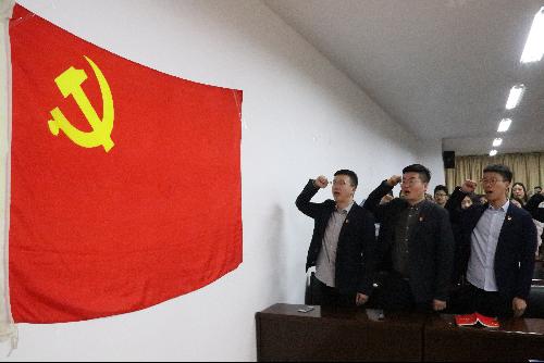 为辅导员授徽 重温入党誓词