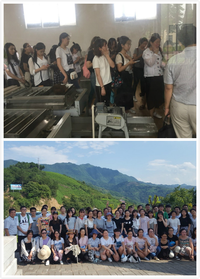 汉中实习期间,师生还走访了陕西省鹏翔茶业股份有限公司。鹏翔茶业股份有限公司为顺应茶叶消费市场变化,延伸产业链,实施多元深度开发,与我校、县茶技推广中心合作,通过近5年的研究试制,探索出适应当地茶树品种和红茶加工期间气候条件的红茶加工技术。与企业负责人交流过程中,了解到汉家红茶初制工艺流程分为萎凋、揉捻、发酵和干燥四个步骤。除此之外,企业负责人还带领大家参观了汉中仙毫的生产线,并邀请大家品尝红茶和绿茶。