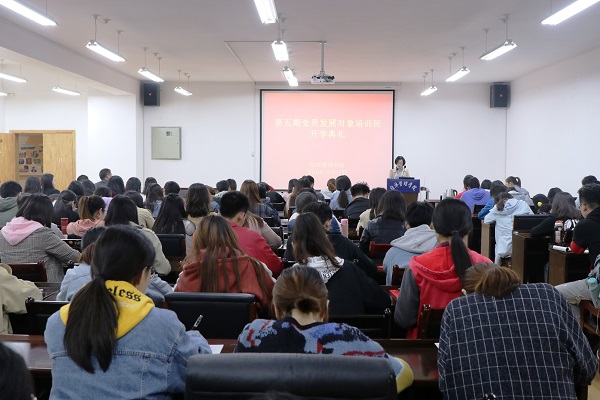 为深入学习贯彻习近平新时代中国特色社会主义思想和党的十九大精神,落实“全面从严治党”和新时期发展党员工作安排部署,强化对党员发展对象的理论武装,10月17日晚,经管学院在经管园林大楼C401会议室举办第五期党员发展对象培训班开学典礼。学院党委书记张岁平,培训班班主任王倩茹出席典礼,特邀马克思主义学院副院长郭洪水教授作学习辅导,全体学员到场参加。