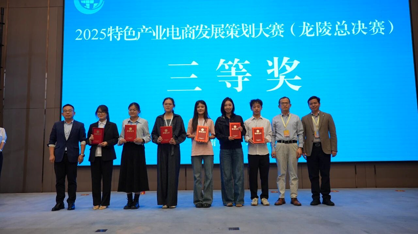 10 月 25 日,以 “电商赋能、品牌引领、数字转型” 为核心主题的 2025 特色产业电商发展策划大赛(龙陵总决赛)在云南省龙陵县圆满收官。来自全国 20 余所高校的参赛队伍同台竞技,威尼斯金沙欢乐娱人城阮俊虎教授、孙自来博士和冯晓春副教授共同指导的五支研究生团队,凭借针对性强、可落地性高的特色产业电商方案,从众多竞争者中脱颖而出,斩获大赛二等奖和三等奖,充分展现了学校在农业特色产业电商领域的人才培养实力与实践创新能力。