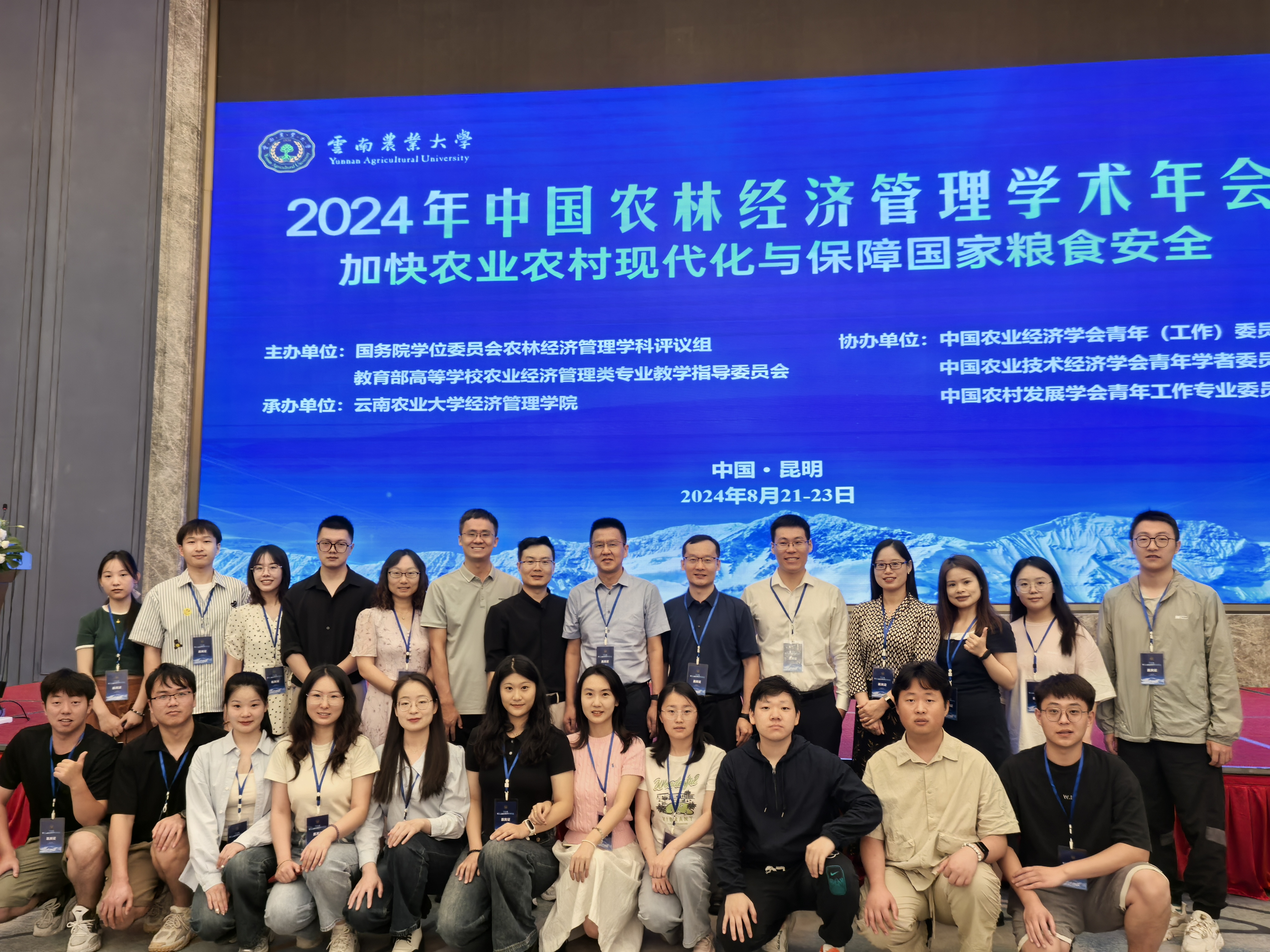 8月21日—23日, 2024年中国农林经济管理学术年会在云南农业大学举办。本届年会以“加快农业农村现代化与保障国家粮食安全”为主题,由国务院学位委员会农林经济管理学科评议组、教育部高等学校农业经济管理类专业教学指导委员会主办,中国农业经济学会青年(工作)委员会、中国农业技术经济学会青年学者委员会和中国农村发展学会青年工作委员会协办,云南农业大学威尼斯金沙欢乐娱人城承办。副校长刘天军教授、副院长汪红梅教授、石宝峰教授、任彦军教授、马红玉副教授、张晨副教授以及20名博硕士生参加本次此次学术年会。