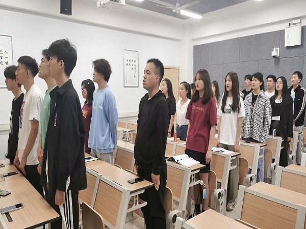 首先,班级同学合唱国歌,集体观看《这盛世如你所愿》爱国教育宣传片并引发同学们思考“为什么要学习党团历史”;进一步观看《团的光辉历史》系列纪录片,进行党团史教育。接着,围绕“党团历史”展开知识竞赛,以团小组为单位,通过必答题和抢答题两个环节使全体同学参与其中,热情高涨之余掌握了基本的党团历史知识。继而,大家观看了共青团中央五四微电影《重逢》,于回首中感受时代精神。之后,各团小组就“如何将党团精神应用于实践”这一话题展开了激烈的讨论,并由8名小组代表进行总结发言。最后,同学们观看了由全体同学分工制作的《探寻红色记忆,传承红色基因》红色精神短视频,并通过齐唱《我爱你,中国》进一步抒发对祖国的热爱之情。