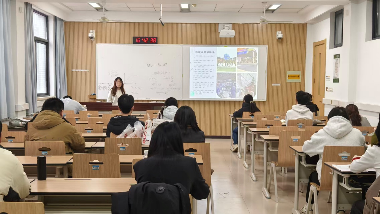 紧接着赵海媛学姐向同学们分享“学业规划”方面的内容。从大二经济学专业课程入手,赵海媛学姐分门别类地对概率论等科目的期末复习关键做出介绍:“应该复习什么,应当注意哪些,应该如何调整……”;在宣讲过程中,她结合自己亲身经历,风趣幽默又鞭辟入里,“当时我们考试前也会手足无措,但关键还是找到自己的节奏”,引起了同学们发自内心的共鸣与感动,话音刚落,掌声雷动。