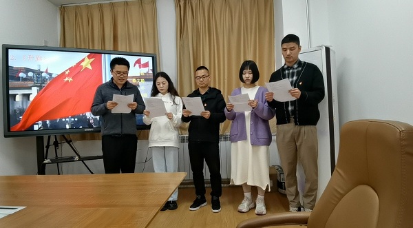 诗歌朗诵接近尾声,支部成员们被诗歌中红色激情时代的场景吸引,久久不能自拔。刘军弟老师总结时谈到:“回顾党的历史,我们党从小到大、由弱到强,在腥风血雨能够一次次绝境重生,在攻坚克难中能够不断从胜利走向胜利,根本原因就在于不管是处于顺境还是逆境,我们党始终坚持为中国人民谋幸福、为中华民族谋复兴的初心使命,义无反顾向着这个目标前进,从而赢得人民的衷心拥护和坚决支持。在我们党的领导下,党旗飘飘永远引领我们前进,每天早晨五星红旗能够高高升起,永远把我们的中国红撒向世界,描绘人类共同美好的未来!”